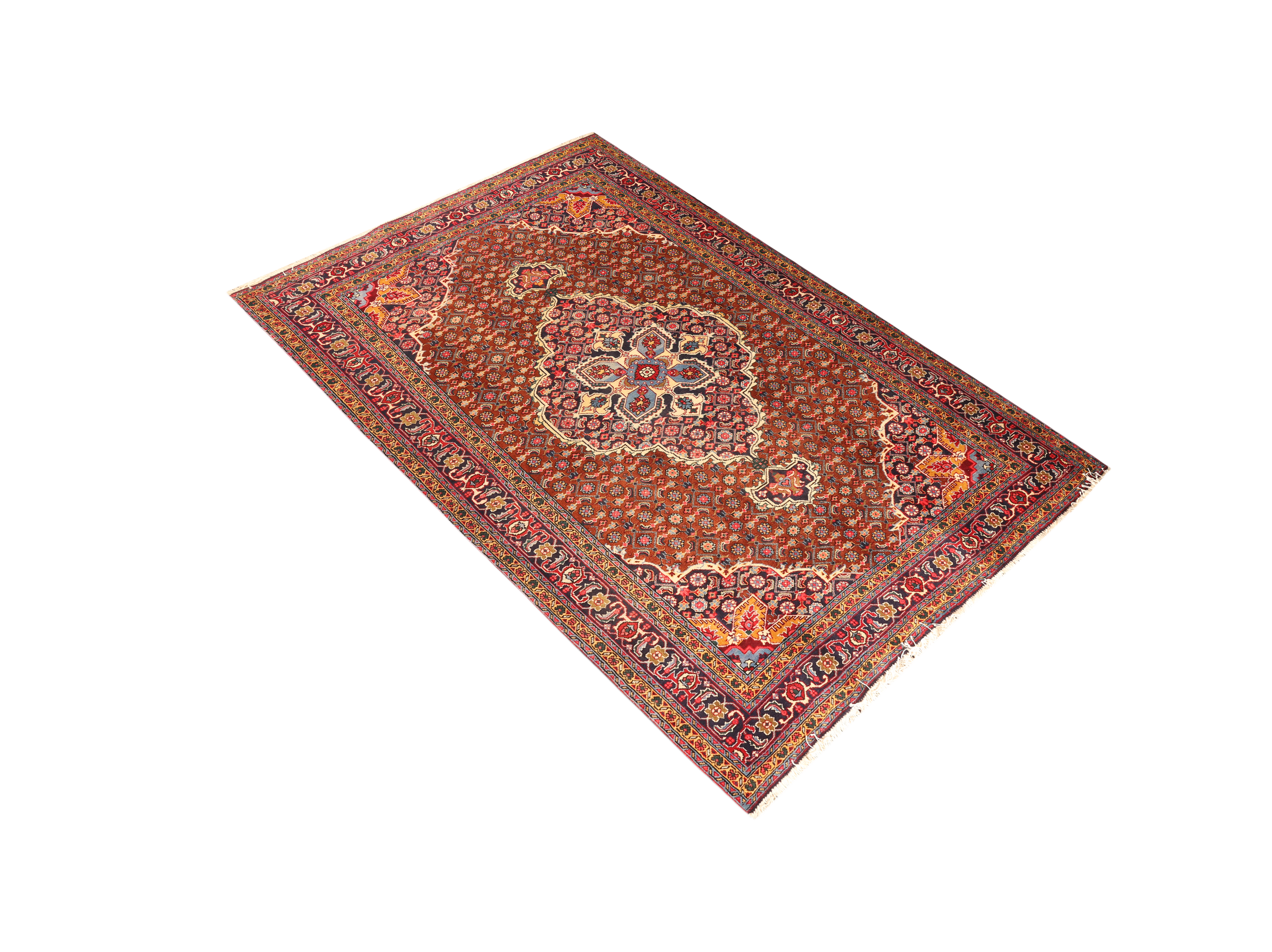 Common designs: Medallion (Toranj), Herati (Mahi), Geometric.