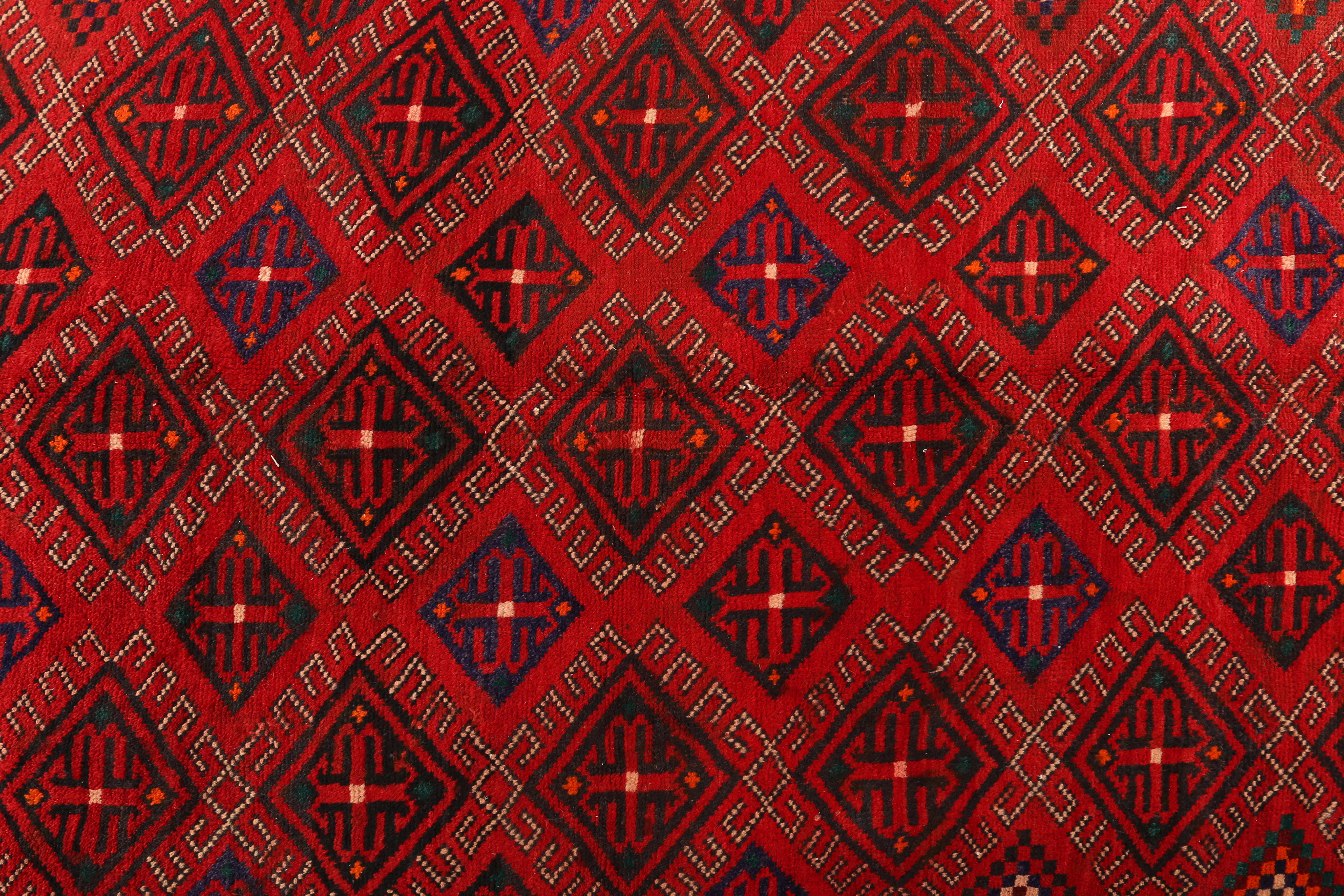 Rich symbolism permeates every element of this extraordinary piece, where red signifies joy and celebration in Persian culture, while the deep navy blue represents infinity and wisdom. The diamond lattice pattern traditionally symbolizes protection and the eternal cycle of life, making this rug not merely decorative but spiritually meaningful. Each hand-knotted symmetrical knot represents hours of patient craftsmanship, creating a one-of-a-kind masterpiece that elevates any living space with authentic Persian heritage.