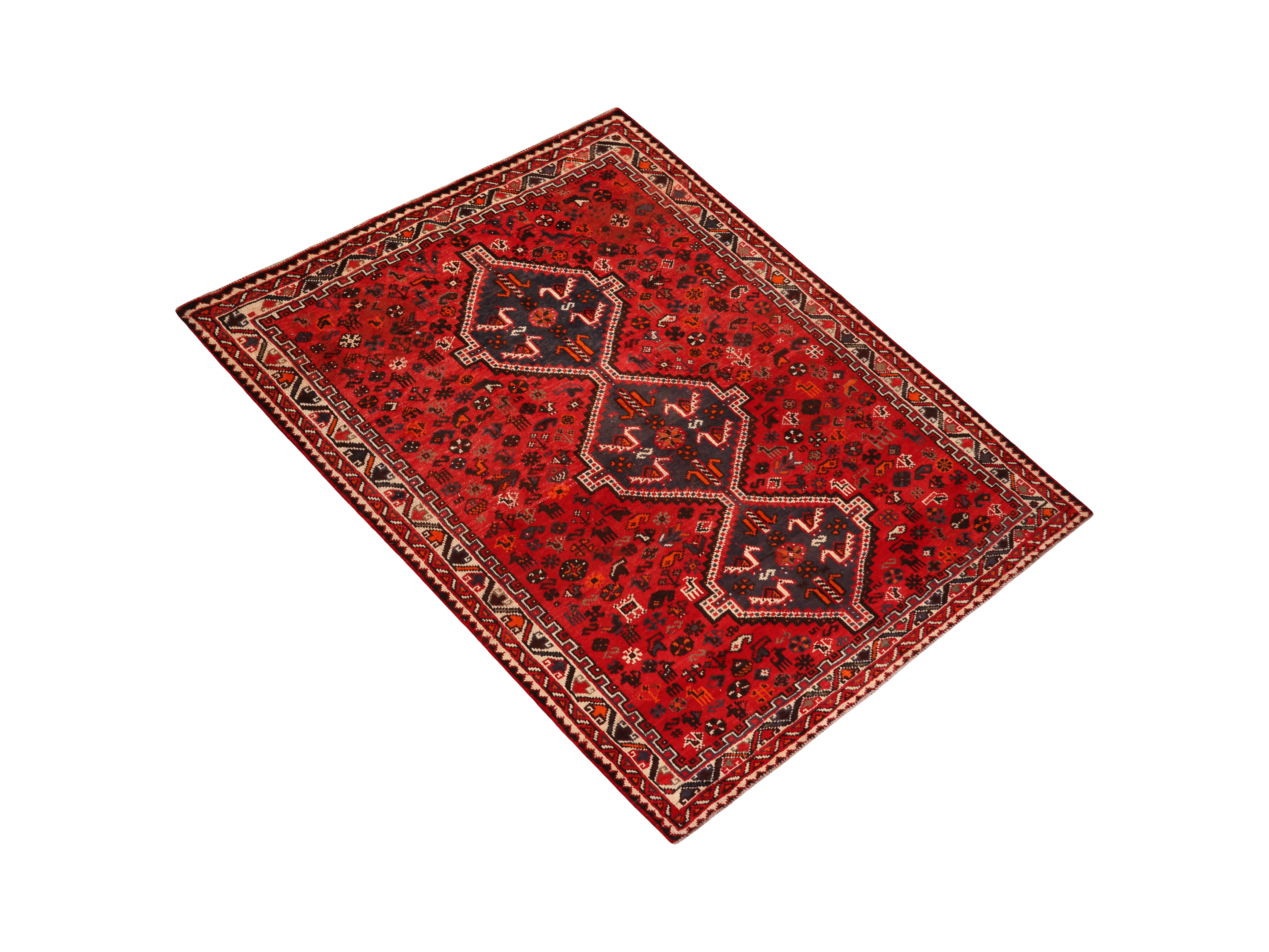 The rich color palette of madder red, dark red, and cream creates a warm, inviting atmosphere that complements both traditional and contemporary interiors, while the black and brown details provide grounding elements that enhance the rug's tribal sophistication. This Shiraz treasure represents not just floor covering, but a piece of living Persian history that brings cultural depth and artistic heritage into your home.