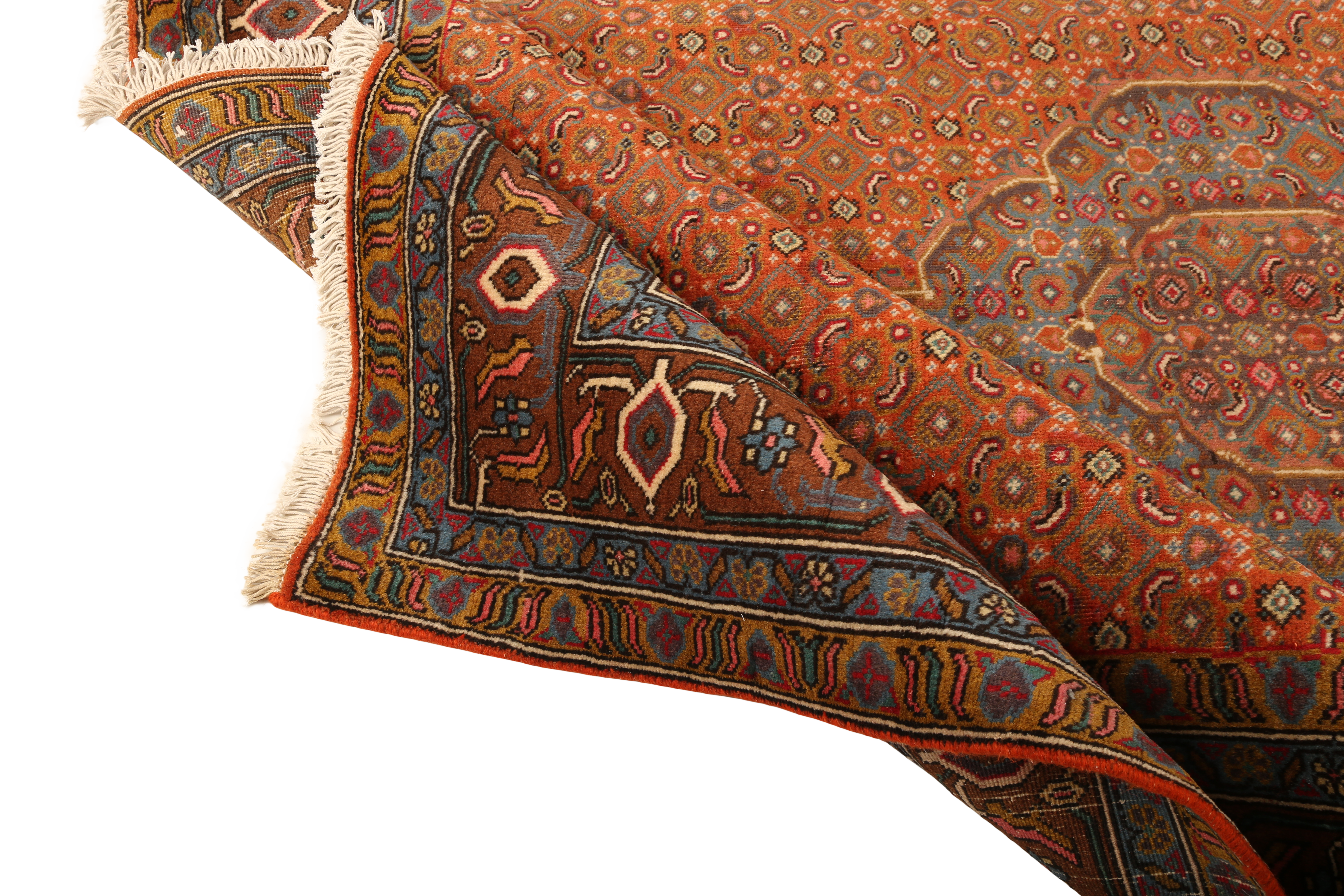 geometric sensibility of northwestern Persian tribal weaving with more refined medallion and Herati floral patterns reflecting the influence of nearby urban weaving centers, creating rugs of distinctive layered visual